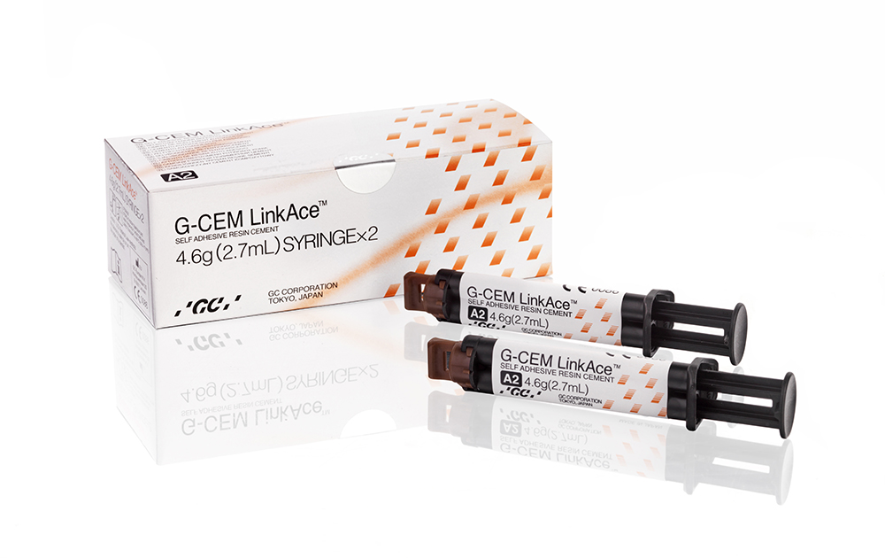 Delivered in double-barrel automix syringe, G-CEM LinkAce® is designed for the adhesive luting of all-ceramic, metal and composite indirect restorations. Through a new innovative initiator system (chemical), G-CEM LinkAce® offers the highest polymerization in self-cure mode. The proprietary phosphate monomers of G-CEM LinkAce® provide a high bond durability to Zirconia, while the unsurpassed wear resistance and exceptional color stability give peace of mind when luting CAD-CAM and metal-free restorations. G-CEM LinkAce®, a winning hand for all indirect restorations.